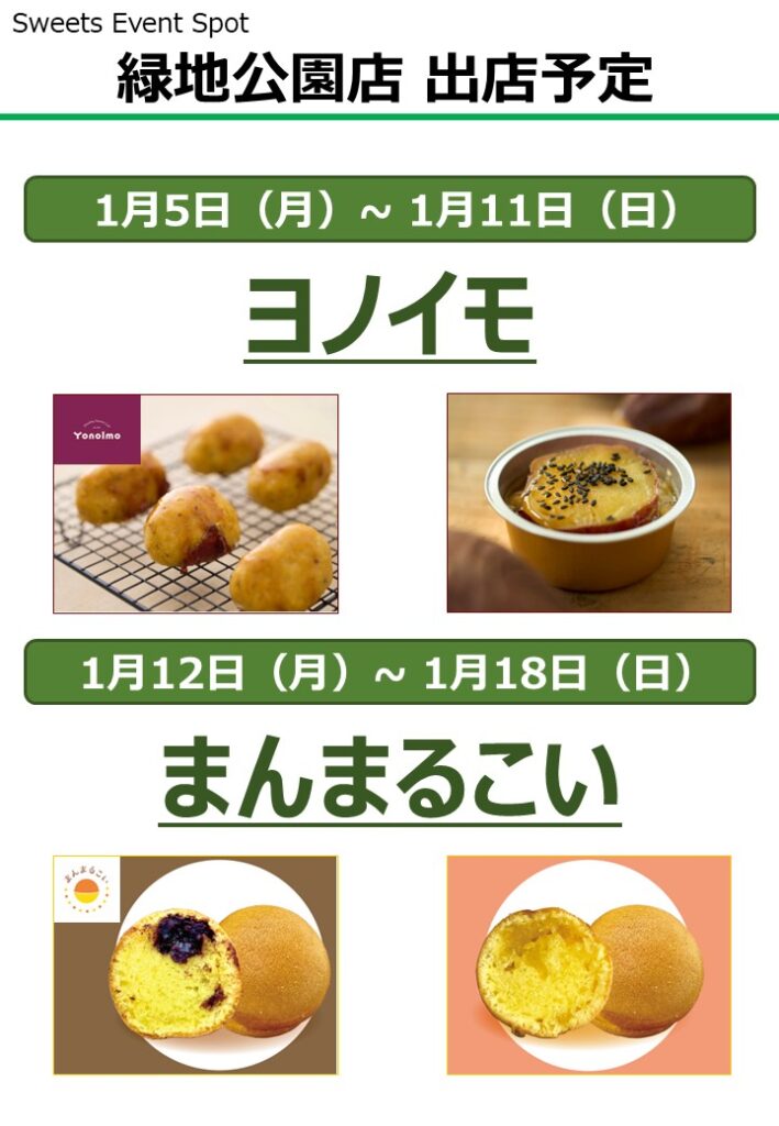 週替わりで色々なスイーツ店が登場するSweets Event Spotの出店予定を掲載しております。