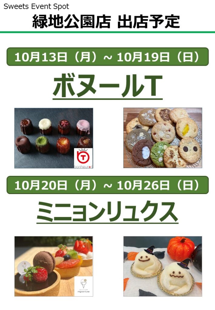 週替わりで色々なスイーツ店が登場するSweets Event Spotの出店予定を掲載しております。